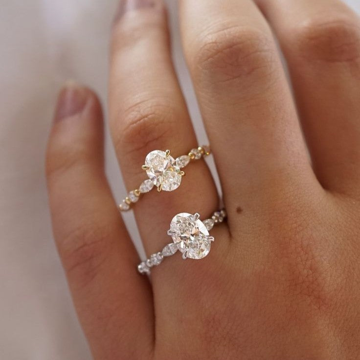 כל קולקציות התכשיטים שלנו עשויים כסף טהור 925 בציפוי זהב לבן 14K עם שכבת מגן רודיום, ושיבוץ אבני מוסונייט (כמות וקראט תלוי תכשיט)