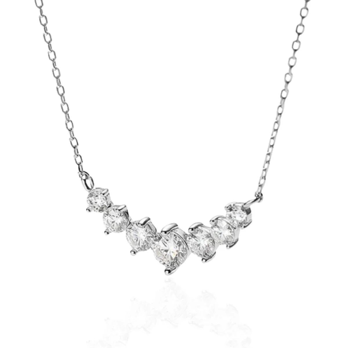 השרשרת עשויה כסף טהור 925 בציפוי זהב לבן 14K עם שכבת מגן רודיום, משובצת באבני מוסונייט 1 קראט VVS1 צבע D
