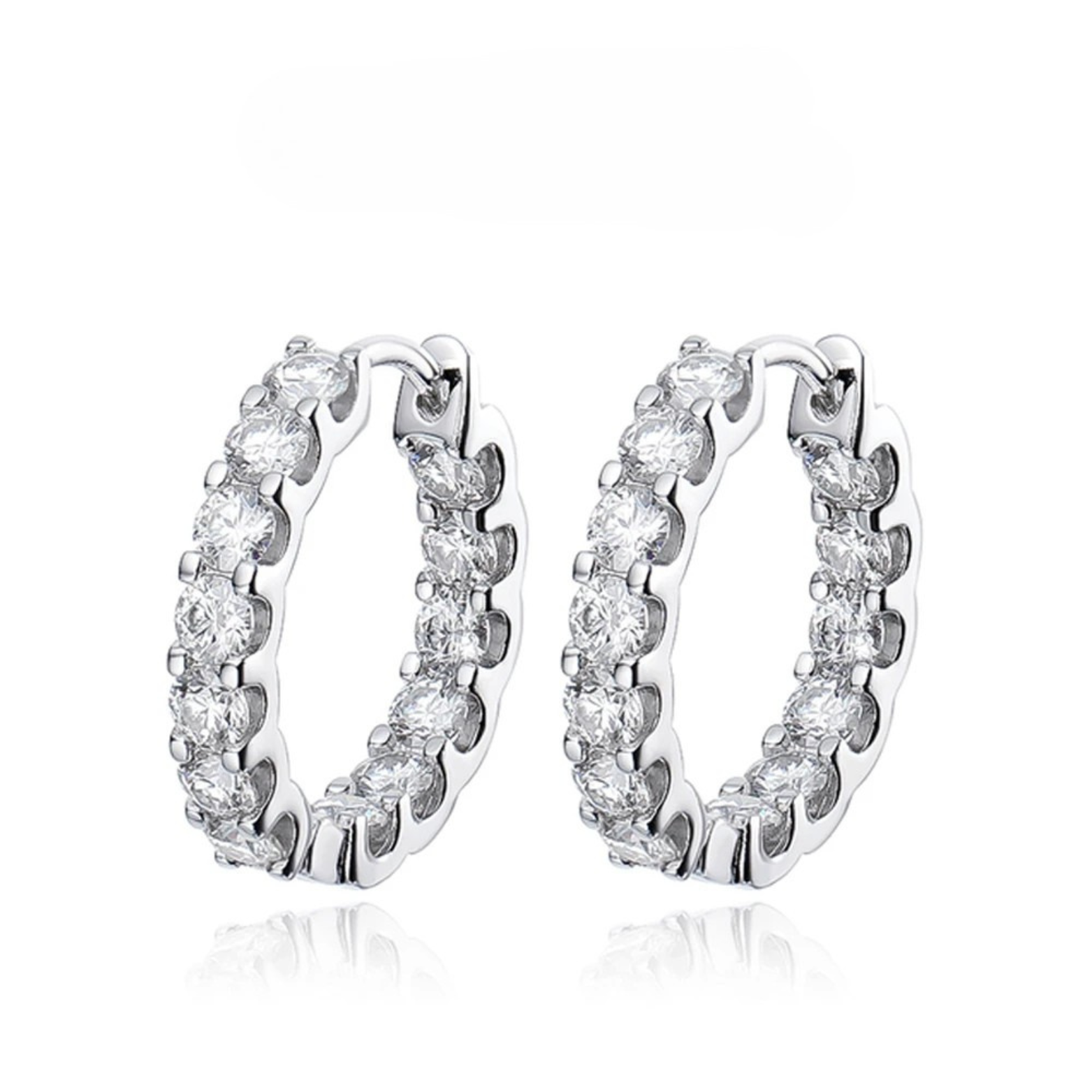 העגילים עשויים כסף טהור 925 בציפוי זהב לבן 14K עם שכבת מגן רודיום, משובצים באבני מוסונייט 1 קראט VVS1 צבע D