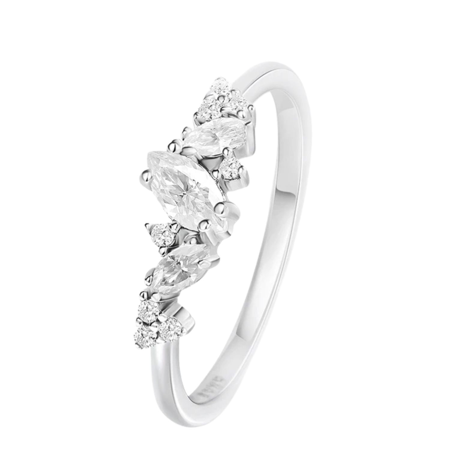 הטבעת עשויה כסף טהור 925 בציפוי זהב לבן 14K עם שכבת מגן רודיום, משובצת באבני מוסונייט 1 קראט VVS1 צבע D