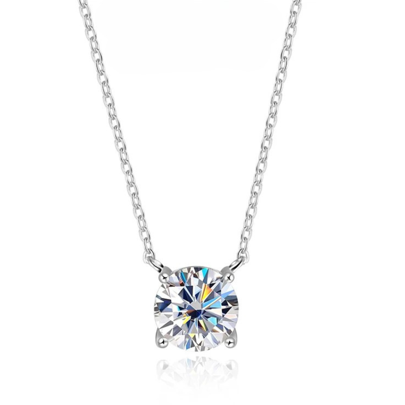השרשרת עשויה כסף טהור 925 בציפוי זהב לבן 14K עם שכבת מגן רודיום, משובצת באבני מוסונייט 1 קראט VVS1 צבע D