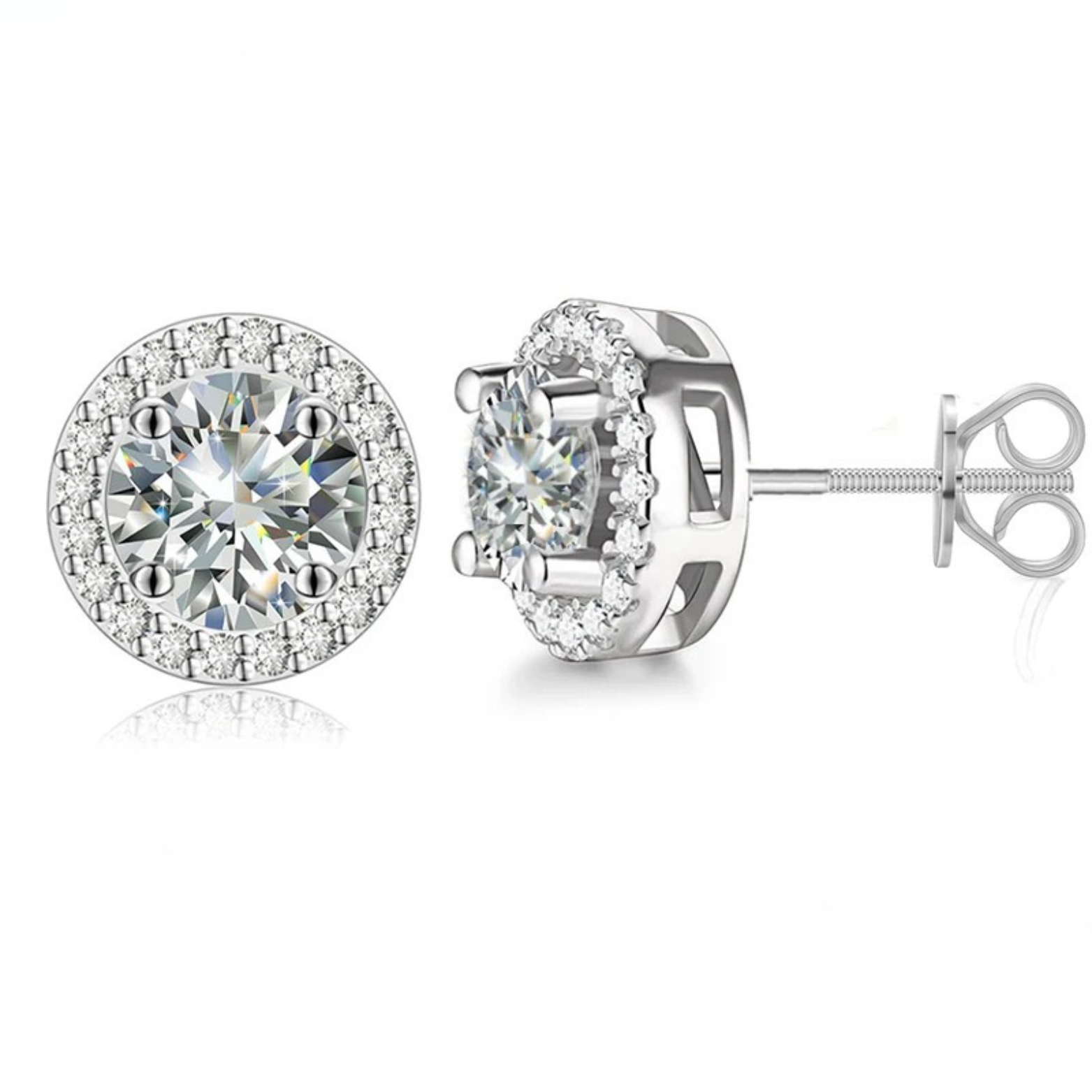 העגילים עשויים כסף טהור 925 בציפוי זהב לבן 14K עם שכבת מגן רודיום, משובצים באבני מוסונייט 1 קראט VVS1 צבע D